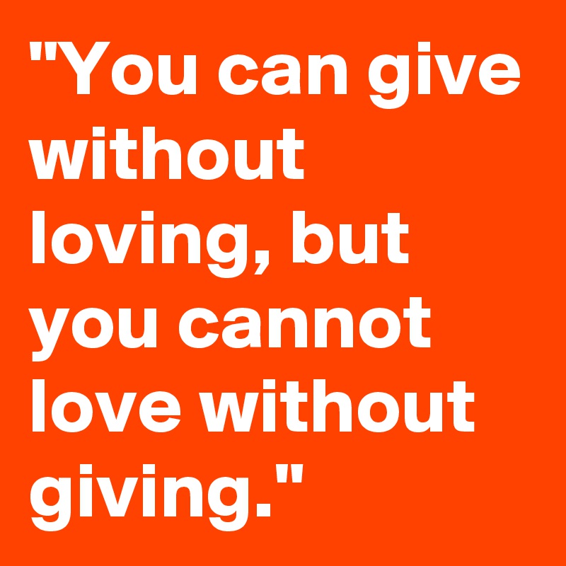 You can give without loving but you cannot love without giving. You can give without loving but you cannot love without giving - Amy Carmichael Do you agree with this quote. - Robert Louis Stevenson.